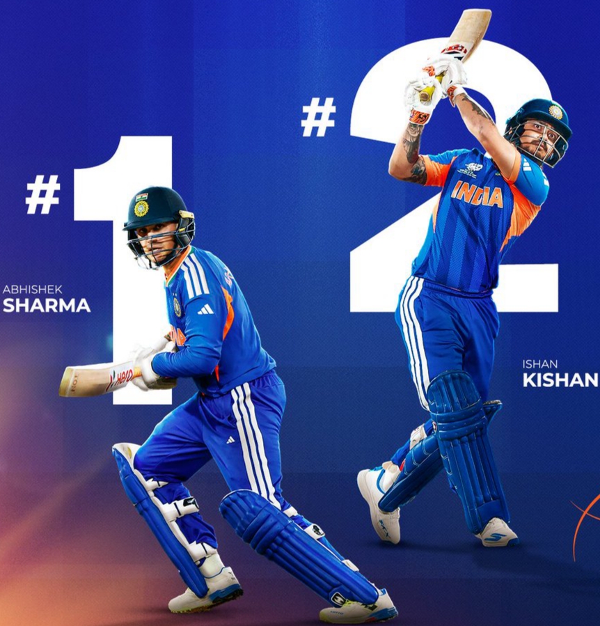 अभिषेक शर्मा और किशन टी-20 बल्लेबाजी रैंकिंग में पहले और दूसरे स्थान पर