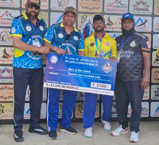 नई दिल्ली (संवाददाता)l पहले इलाही मेमोरियल ओल्ड दिल्ली ट्वेंटी-ट्वेंटी क्रिकेट टूर्नामेंट में सुपर सिक्सर क्लब ने बेहतरीन प्रदर्शन करते हुए दिल्ली चैलेंजर को 144 रनों के बड़े अंतर से हराकर शानदार जीत दर्ज की। मुकाबला सेंट स्टीफन ग्राउंड, मोरी गेट पर खेला गया।