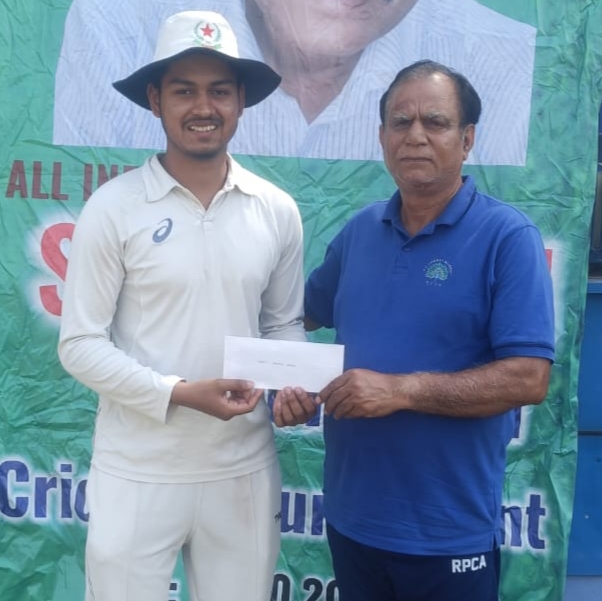 मैन ऑफ द मैच का पुरस्कार शौर्य सिंह को कोच एवं पूर्व रणजी ट्रॉफी खिलाड़ी सुरजीत वर्मा जी द्वारा प्रदान किया गया।